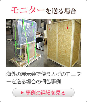コスト削減を実現した『輸出梱包キットパック』 これまで木材梱包業界での常識は、梱包箱はワンウェイでの使い捨てでした。お客様からの要望に応じ、製品が破損することなく目的地に送れるよう、製品に合わせ採寸し、梱包箱を作ってきました。 ですが、海外へ展示会を出展する等、自分たちで開梱、搬出、再梱をする場合には通常の梱包形状状態では非常に難しいのが現状でした。 しかし、何度も使いたいとの要望にお応えし、繰り返し使えるようにしたのが『輸出梱包キットパック』です。 ![]() ![]() ![]() ![]() 台座箱分離タイプは、重量物の梱包に向いており、台座に製品を固定したら、あとは上から箱をかぶせ、ネジを止めるだけで、簡単に組立て梱包ができます。 ![]() ![]() 6面開閉タイプは最も様々な形状、複数同時に梱包箱に入れたい時に適しています。 ![]() ![]() 荷物の背丈があまりないものを梱包するのに適しています。 ![]() ![]() ![]() ![]() ![]() ![]() ![]() |